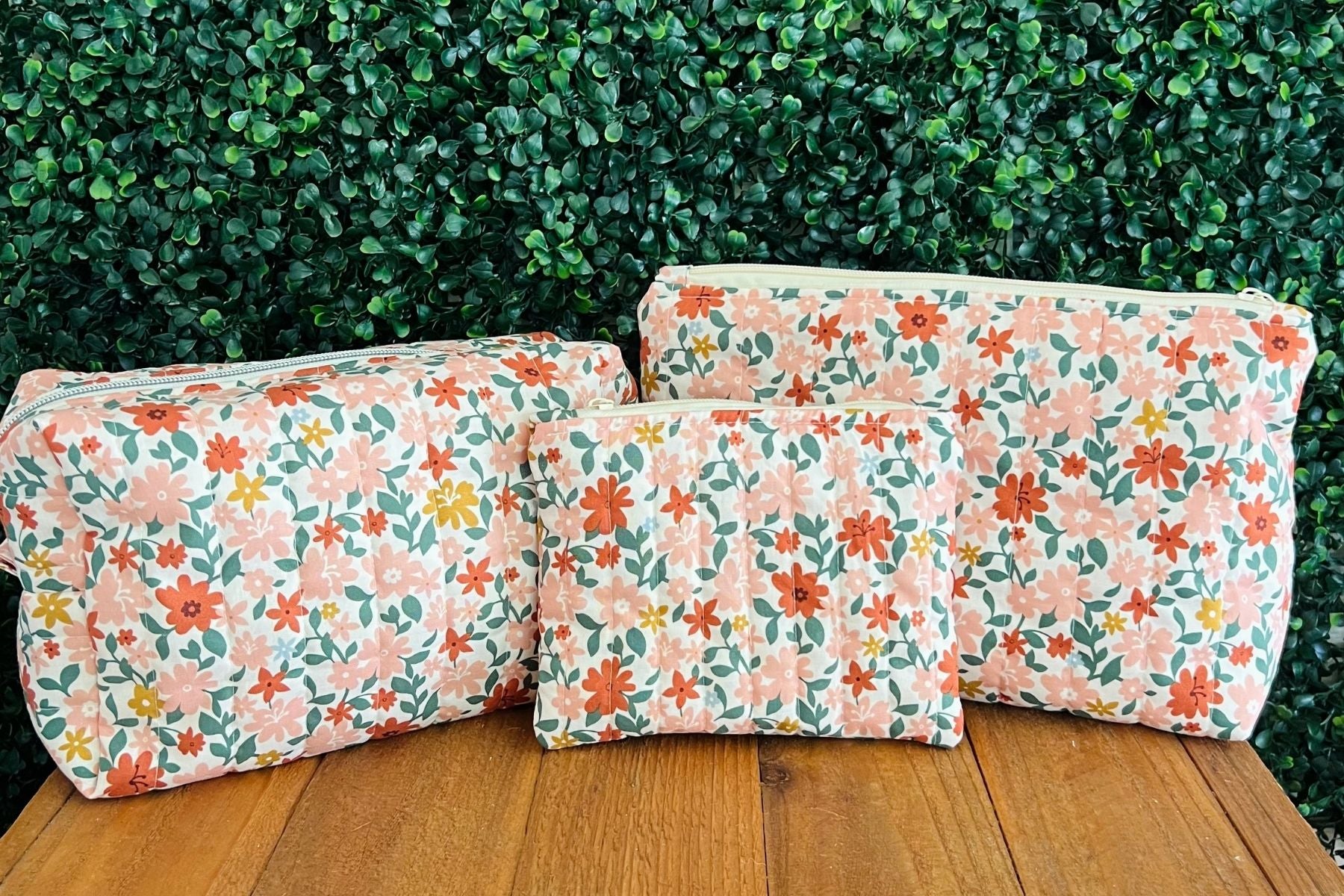 This Cottage Floral quilted zip pouch is a great bag to hold your money, chapstick, ID's and more.