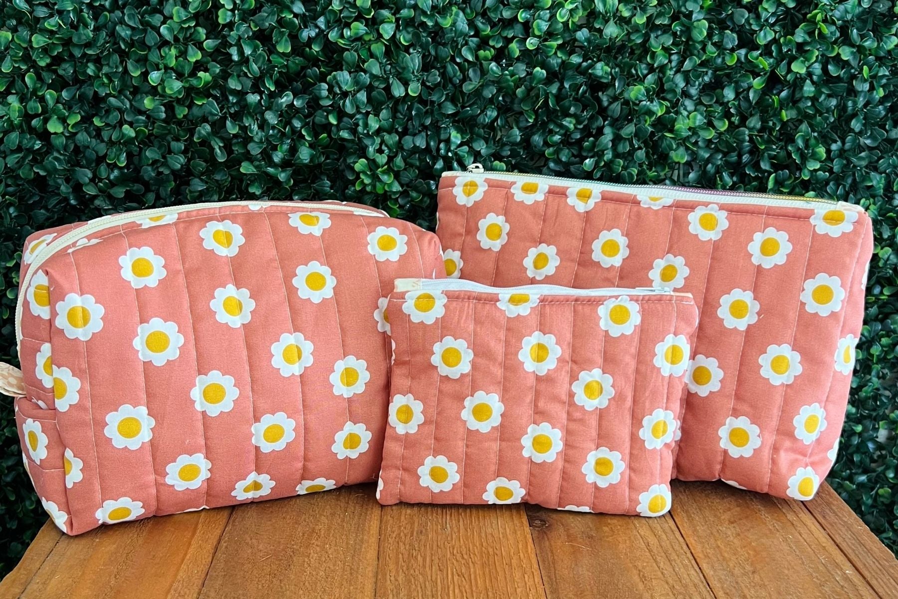 This Sunflowers quilted zip pouch is a great bag to hold your money, chapstick, ID's and more.